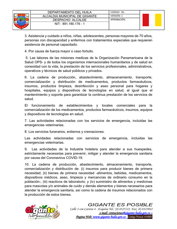 aislamiento preventivo obligatorio nacional en el municipio de gigante - huila,